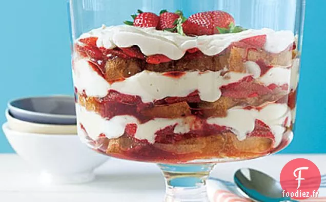 Tartiner avec 1/3 de crème anglaise. Répétez la superposition jusqu'à ce que vous ayez utilisé tous les gâteaux, les baies, la crème anglaise et la triple sec, en terminant par la crème anglaise. Réfrigérer jusqu'au moment de servir.