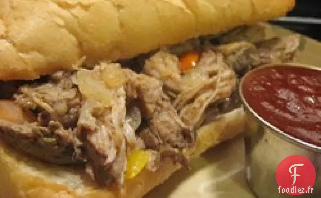 Placer le porc dans une mijoteuse et couvrir du mélange de sauce. Couvrir et cuire 4 à 5 heures à feu doux, ou jusqu'à ce que la viande se déchire facilement.