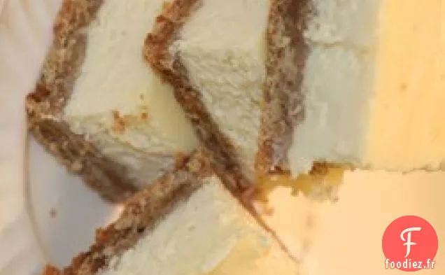 Pour faire la garniture: Battre ensemble le sucre blanc et le fromage à la crème jusqu'à consistance lisse. Incorporer l'œuf, le lait, le jus de citron et la vanille et bien mélanger.