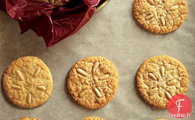 Les biscuits aux pignons de pin pourraient être une bonne recette pour élargir votre répertoire de desserts. Pour 28 cents par portion, cette recette couvertures 3% de vos besoins quotidiens en vitamines et minéraux. Tu regardes ta silhouette ? Cette recette végétarienne a 102 calories, 1g de protéines, et 6g de matières grasses par portion. Cette recette sert 24 personnes. Un mélange de pâte d'amande, de levure chimique, de sel et d'une poignée d'autres ingrédients suffisent pour rendre cette recette si délicieuse. De la préparation à l'assiette, cette recette prend environ 45 minutes. 1 personne a essayé et aimé cette recette. Il vous est apporté par Mes recettes. Tout bien considéré, nous avons décidé de cette recette mérite une note cuillerée de 11%. Ce score est plutôt mauvais. Essayer Agnolotti au Brocoli Rôti et aux Épinards dans une Sauce aux Noix de Pin Beurrées, Biscuits aux Noix de Pin, et Biscuits aux Noix de Pin au Romarin pour des recettes similaires.