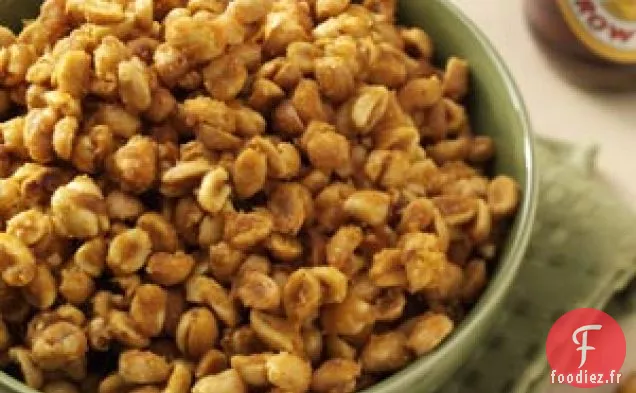 Placer les arachides dans un qt 1-1/2 graissé. mijoteuse. Dans un petit bol, mélanger les sucres, l'eau, le beurre, la sauce piquante et la poudre de chili.