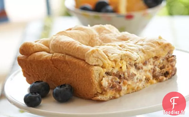 Rouler le reste de la pâte en croissant dans un rectangle de 13 po x 9 po; recouvrir le mélange de saucisses.