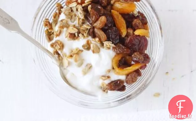 Répartir le yaourt dans 4 bols puis garnir de la compote et du granola.