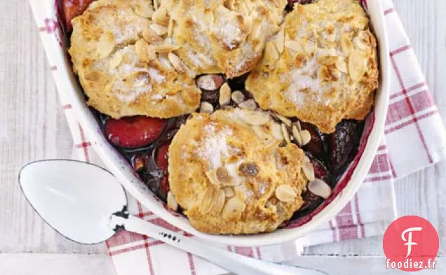 Cuire au four de 30 à 35 minutes jusqu'à ce que la garniture soit dorée et que les fruits bouillonnent en dessous. Répartir avec plus de sucre en poudre pour servir.