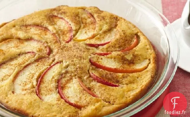 Verser sur le beurre fondu dans l'assiette à tarte. Disposer les tranches de pomme sur la pâte.