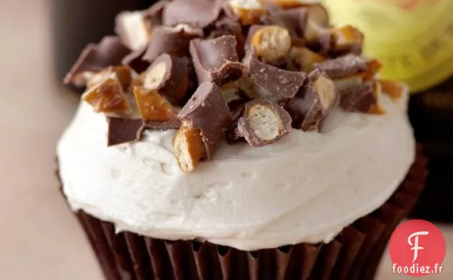 Saupoudrer chaque cupcake d'une cuillère à soupe de bretzels écrasés. Les cupcakes peuvent être réfrigérés jusqu'à 3 jours dans un récipient hermétique ou congelés pendant 1 mois.