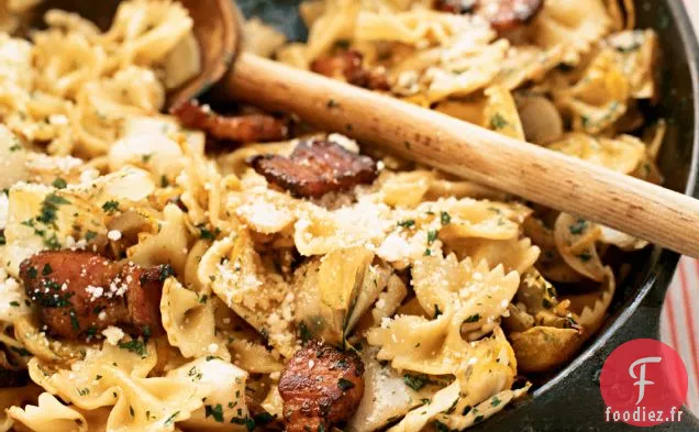 Égouttez la farfalle et ajoutez-la à la poêle.