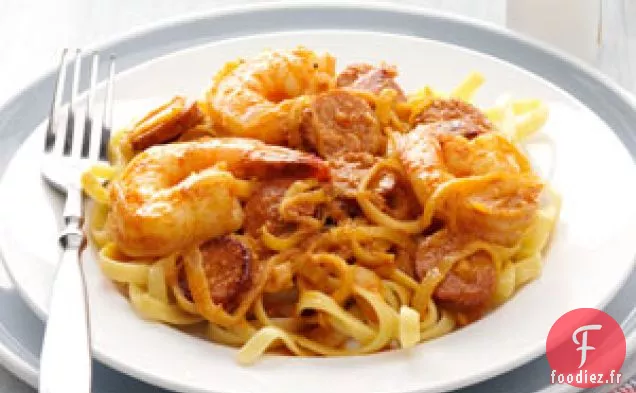 Fettuccine de Crevettes aux Langoustines au Beurre d'Andouille