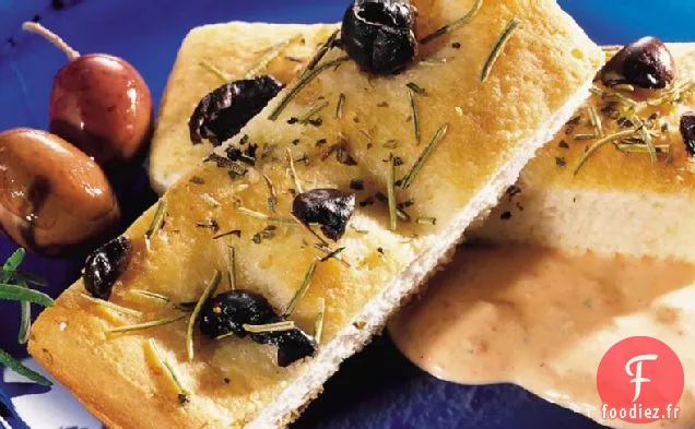 Focaccia aux Olives avec Trempette au Poivron rôti