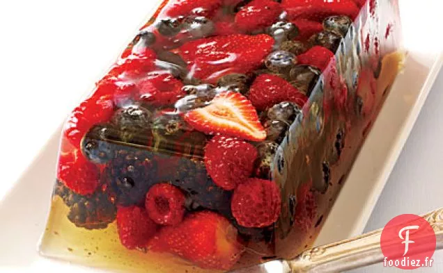 Retirez les tiges des myrtilles; rincez les baies et séchez-les. Rincez les mûres et séchez-les. (Ne pas rincer les framboises.) Mettez les baies dans un grand bol. Mélanger doucement et transférer dans un moule à pain de 8 x 4 pouces (2 pintes).