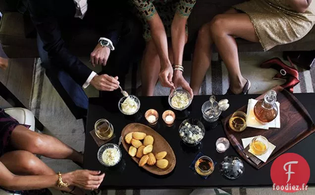 Dans un petit bol, fouetter ensemble le yogourt, la crème et le sirop de gingembre juste pour mélanger.