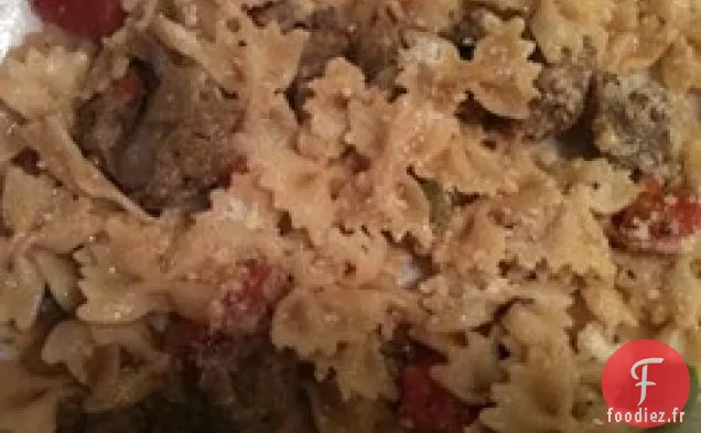 Ajouter les pâtes nœud papillon au mélange saucisse-bouillon; laisser mijoter jusqu'à ce que les pâtes soient cuites mais fermes à croquer, 5 à 6 minutes de plus.