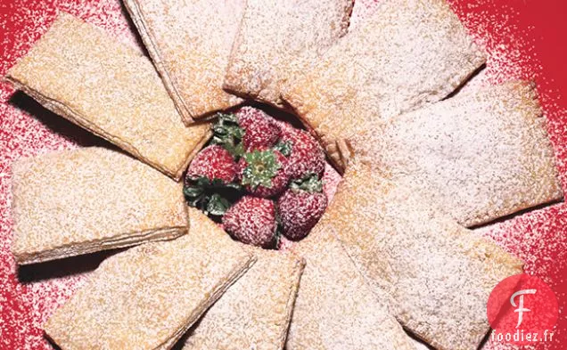 Tapisser 2 grandes plaques à pâtisserie cerclées avecparchemin. Travailler avec 1 disque à la fois, étaler la pâte sur une surface farinée à environ 13x11 pouces. Coupez en rectangle de 12 x 10 pouces, puis coupez en huit rectangles de 5 x 3 pouces.