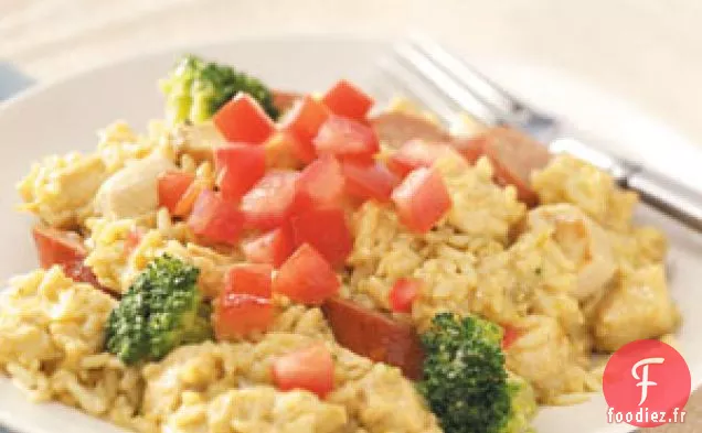 Si vous souhaitez ajouter d'autres recettes sans gluten et sans produits laitiers à votre boîte de recettes, le poulet et le kielbasa avec riz au curry pourraient être une recette que vous devriez essayer. Une portion contient 704 calories, 31 g de protéines et 41 g de matières grasses. Pour 2,61 $ par portion, cette recette couvre 34 % de vos besoins quotidiens en vitamines et minéraux. Cette recette en sert 4. Cette recette de Taste of Home nécessite du brocoli, du lait de coco, de la crème de céleri condensée et de la poudre de curry. Seules quelques personnes ont fait cette recette, et je dirais qu’elle a fait mouche. Cela fonctionne bien comme plat principal à un prix raisonnable. De la préparation à l'assiette, cette recette prend environ 40 minutes. En tenant compte de tous les facteurs, cette recette obtient un score cuillère de 70 %, ce qui est solide. Les utilisateurs qui ont aimé cette recette ont également aimé Kielbasa avec riz au curry, Poulet en un plat et riz Kielbasa et Poulet avec riz au curry.
