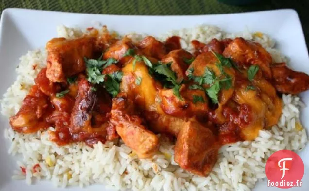 Servir le poulet sur le riz. Garnir de coriandre si désiré.