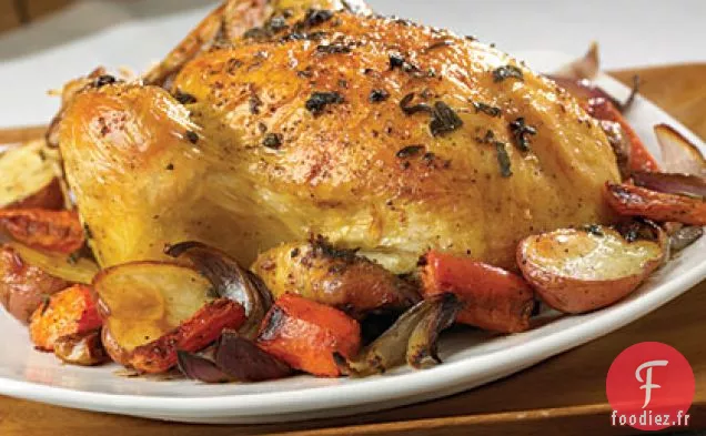 Poulet Rôti à l'Ail et aux Herbes avec Pommes de terre, Carottes et Oignons