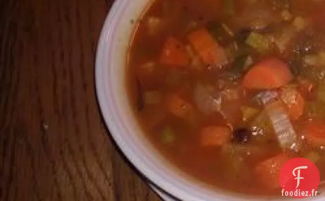 Incorporer le céleri et les carottes. Incorporer le bouillon, la sauce tomate, les haricots noirs, le chou et les pommes de terre. Assaisonner d'origan, de basilic, de poivre noir, de sel de céleri, de poivre de Cayenne et de feuilles de laurier. Porter à ébullition. Réduire le feu à feu doux, couvrir et laisser mijoter 25 minutes, en remuant de temps en temps, jusqu'à ce que les légumes soient tendres. Garnir de parmesan pour servir.