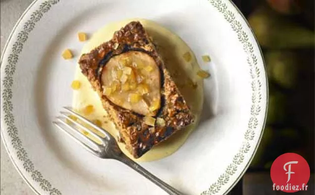Servir en rectangles avec de la crème anglaise, ci-dessous.