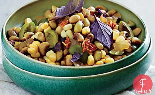 Ajouter le maïs et les olives; laisser mijoter, à couvert, 2 minutes.