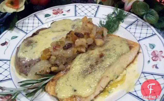 Surf et Gazon Avec Sauce à l'Aneth et Chutney d'Oignons