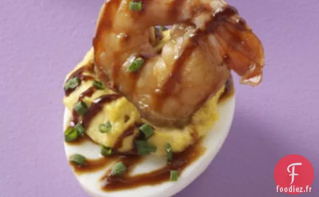 Ajouter la mayonnaise, le gingembre et le reste de la sauce hoisin et soja; bien mélanger. Farcir ou verser dans les blancs d'œufs.